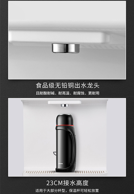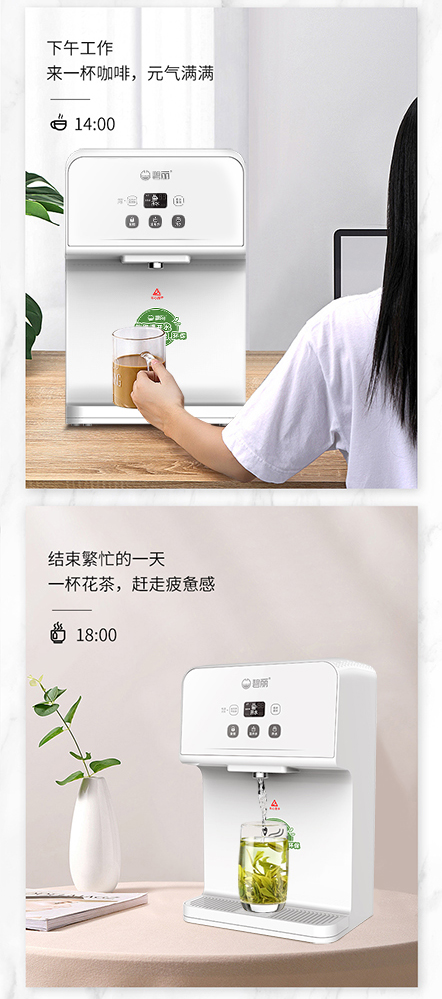 熱膽容量:0.7升  水箱容量:2升  供水量:開水8升/時,溫開水40升/時  電源功率:0.8kW,220V~50Hz  紫外線殺菌:——  外形尺寸:30*20*46cm
