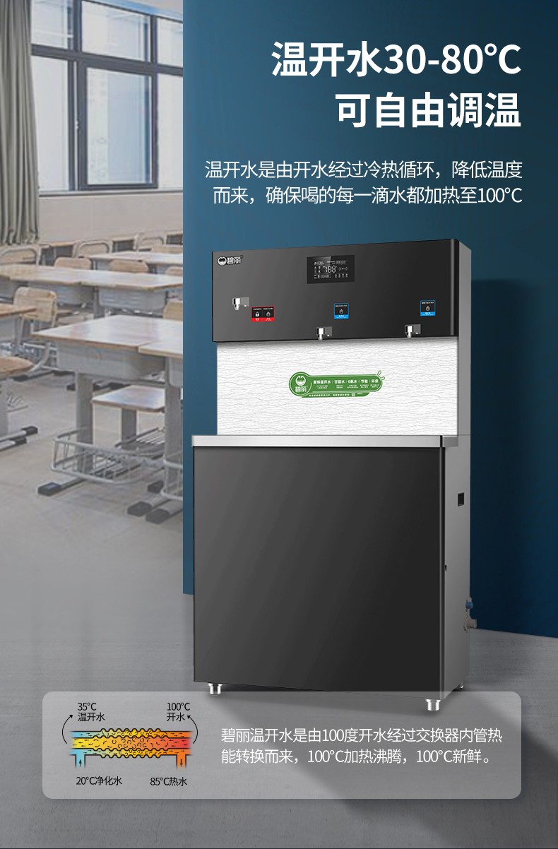 碧麗溫開水飲水設備,您健康飲水生活的不二選擇。日前,廣東中山奧創股份有限公司再一次選擇碧麗品牌的溫開水飲水機!碧麗早在8年前就與該企業結緣,今年,該企業的“飲水小衛士”——碧麗溫開水飲水機正式“退伍”,新款碧麗溫開水直飲水設備接棒“入伍”,繼續保障該企業員工的健康飲水生活!碧麗溫開水飲水機有什么地方值得廣大消費者去信賴并且堅定不移地去使用呢?1、健康:溫開水經過多級過濾和高溫殺菌處理,每一滴溫開水都是真正煮開后再冷卻,接水就可以馬上飲用,不燙手。2、省電:采用熱交換技術,飲用溫開水,省電80%。3、安全:智能水控,水不開則無水出,避免飲用生水。4、零壓力:特設水電聯動閥技術,系統在常壓下工作,避免了壓力式節能飲水機安全隱患的問題。5、自動保護:管路停水,無水流出,自動保護,防水倒流,防干燒。6、材質:整機和內部管路、水膽均采用食品級304不銹鋼材質。集如此多優點于一身的碧麗溫開水飲水設備讓消費者根本無法抗拒,碧麗一直致力于倡導溫開水的健康性,讓更多的人養成健康的飲水習慣,從健康一批人到健康一代人。然而,當下部分地區和校園的飲水安全仍然令人擔憂,水質不達標,校園直飲水供水方案經費不足,安裝使用和運維管理依據標準不明確、不統一等問題突出,學生飲水安全無法保障。本月20日,碧麗集團總裁巫宗權先生將出席由中國質量萬里行促進會舉辦的“全國校園飲水安全論壇”,與專委會、行業相關協會代表、知名企業代表等一同為中國校園健康飲水獻計獻策,以標準教育裝備發展提升教育裝備質量治理能力,讓祖國的花朵健康成長!想了解碧麗產品的更多詳情,撥打碧麗客服熱線400-800-0725即可咨詢購買,還能享受免費量身定制解決方案。碧麗,創造健康飲水生活,為全人類的飲水健康做奉獻!