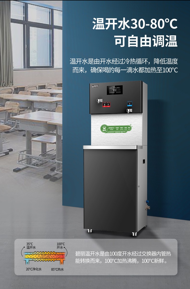 碧麗溫開水飲水設備,您健康飲水生活的不二選擇。日前,廣東中山奧創股份有限公司再一次選擇碧麗品牌的溫開水飲水機!碧麗早在8年前就與該企業結緣,今年,該企業的“飲水小衛士”——碧麗溫開水飲水機正式“退伍”,新款碧麗溫開水直飲水設備接棒“入伍”,繼續保障該企業員工的健康飲水生活!碧麗溫開水飲水機有什么地方值得廣大消費者去信賴并且堅定不移地去使用呢?1、健康:溫開水經過多級過濾和高溫殺菌處理,每一滴溫開水都是真正煮開后再冷卻,接水就可以馬上飲用,不燙手。2、省電:采用熱交換技術,飲用溫開水,省電80%。3、安全:智能水控,水不開則無水出,避免飲用生水。4、零壓力:特設水電聯動閥技術,系統在常壓下工作,避免了壓力式節能飲水機安全隱患的問題。5、自動保護:管路停水,無水流出,自動保護,防水倒流,防干燒。6、材質:整機和內部管路、水膽均采用食品級304不銹鋼材質。集如此多優點于一身的碧麗溫開水飲水設備讓消費者根本無法抗拒,碧麗一直致力于倡導溫開水的健康性,讓更多的人養成健康的飲水習慣,從健康一批人到健康一代人。然而,當下部分地區和校園的飲水安全仍然令人擔憂,水質不達標,校園直飲水供水方案經費不足,安裝使用和運維管理依據標準不明確、不統一等問題突出,學生飲水安全無法保障。本月20日,碧麗集團總裁巫宗權先生將出席由中國質量萬里行促進會舉辦的“全國校園飲水安全論壇”,與專委會、行業相關協會代表、知名企業代表等一同為中國校園健康飲水獻計獻策,以標準教育裝備發展提升教育裝備質量治理能力,讓祖國的花朵健康成長!想了解碧麗產品的更多詳情,撥打碧麗客服熱線400-800-0725即可咨詢購買,還能享受免費量身定制解決方案。碧麗,創造健康飲水生活,為全人類的飲水健康做奉獻!