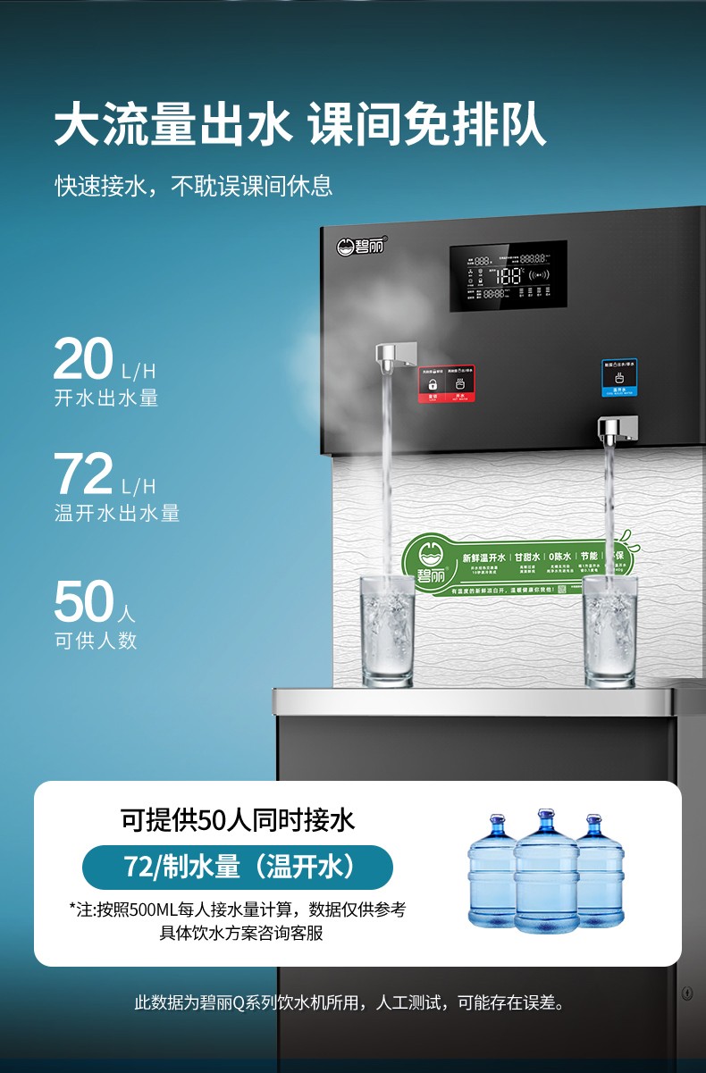 從獲悉用戶需求,前期調研,到跟進設備管道設置及安裝,碧麗的工作人員全程跟進,工作一絲不茍,當前往梅州市公安局交通警察支隊興寧考場的市民喝上了健康、安全有保障的碧麗溫開水時,是對我們全體碧麗人大的褒獎!在獲悉梅州市公安局交通警察支隊興寧考場的飲水需求后,我司的飲水專員迅速跟進,針對其實際情況提供了好的飲水解決方案:碧麗管線機搭配碧麗商用反滲透凈水機。這個方案的優勢有很多,碧麗管線機小巧玲瓏,安裝所需位置小,通過碧麗商用反滲透凈水機過濾后的水水質甘甜可口,開水、溫水兩大選擇,充分滿足用戶需求。碧麗商用反滲透凈水機,一體機設計,模塊組合,安裝簡單,占地空間小。設備采用超靜音設計,制水噪音少于50分貝,LED顯示屏還能夠顯示設備的運行狀態,科技感滿滿的。很多消費者對溫開水存在疑慮,認為其是未煮開且單純加溫到相應溫度的水。然而,碧麗直飲水設備提供的溫開水是100%煮開后再降溫到適宜溫度,出水水質有保障還能養護腸胃,35℃~40℃的溫水,是人體胃腸的“好朋友”。碧麗,中國公共飲水行業開創企業,20年行業積淀,擁有行業全的產品線,產品種類多、性能強,大型標桿工程遍布全國各地!碧麗,溫開水飲水機研發企業,并致力于推廣溫開水的健康性,一心為全人類的飲水健康做奉獻。碧麗貼心服務+細致用心=專注!歡迎撥打碧麗全國客服熱線:400-800-0725,我們將竭力為您提供優的飲水方案,為健康飲水生活加分!